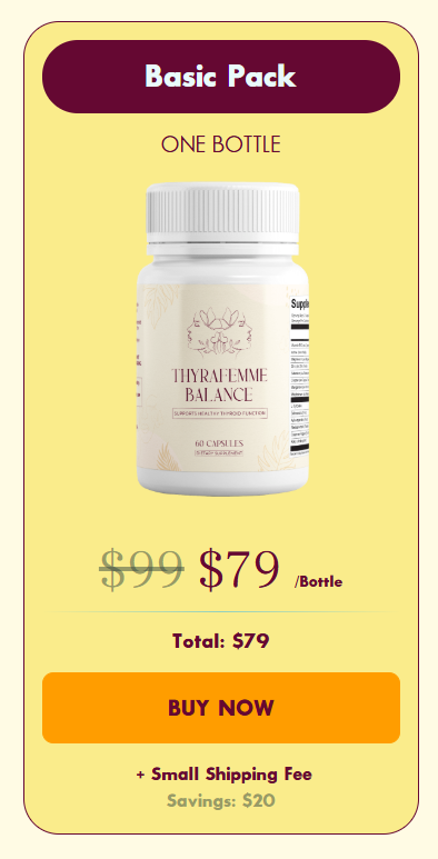 Many women struggle with thyroid-related symptoms but hesitate to rely on extreme treatments or medications with side effects. Thyrafemme Balance offers a safe, natural, and affordable alternative that targets the root causes of thyroid imbalance with a science-backed blend of nutrients and botanicals.